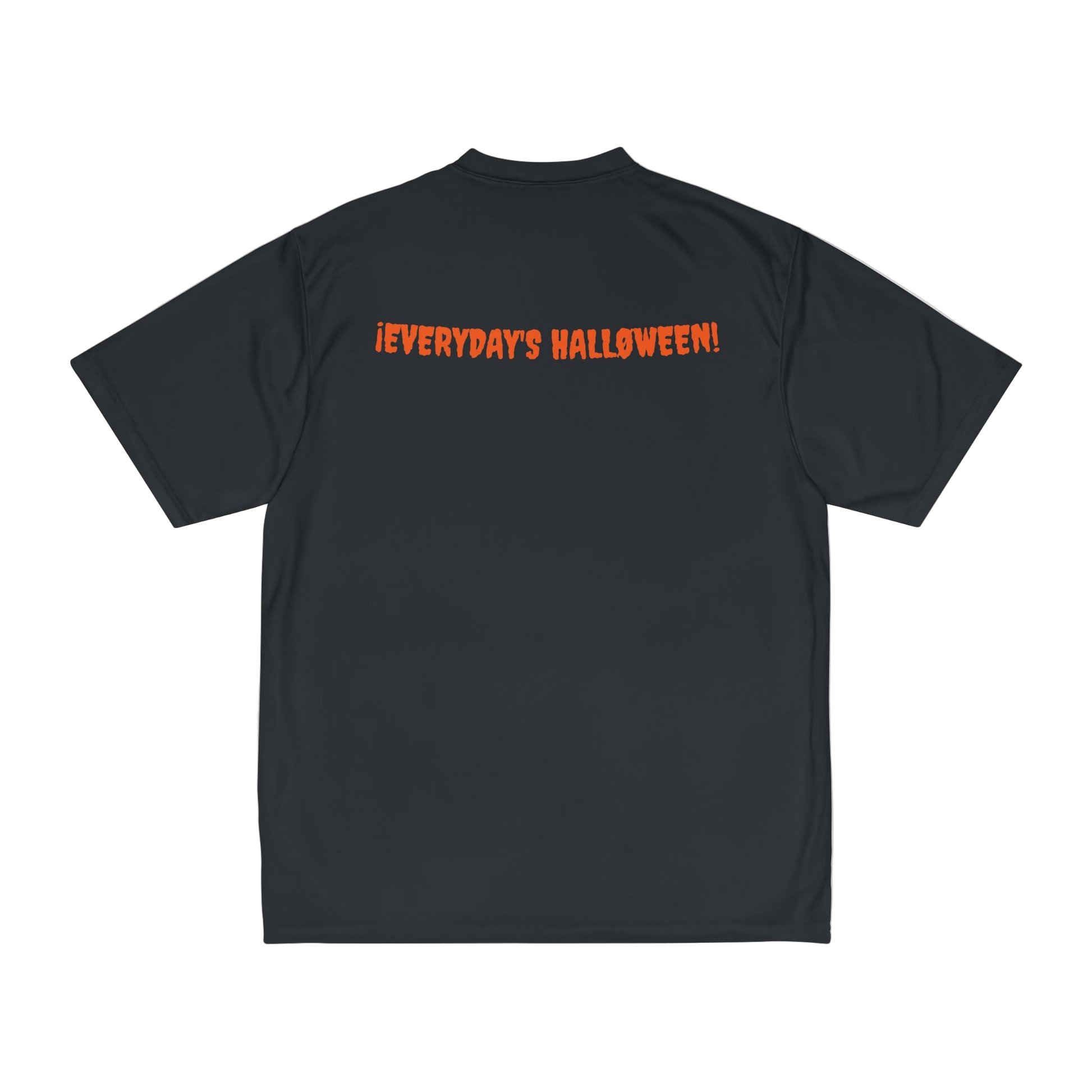 The Men's Performance T-Shirt by DOLO ‘EVERYDAY’S HALLØWEEN’ 2025 DROP. Made of 100% polyester, this moisture-wicking T-shirt will keep you cool and dry at all times¡ The Double-needle stitching and self-fabric binding ensure durability and a clean look. The direct-to-film print gives a unique touch.